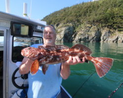 Dragons were battled, both large and small. Most fish were landed and some were lost. Our largest fish was a massive heavy female dragon. She latched onto a 3 pound quill back rockfish. The rockfish was hooked on a whole herring mooched by angler Erik Shouse. This fish was brought all the way to the boat and netted while only holding onto the rockfish and never actually being hooked! We call that a “klingon“. The big female immediately rolled violently spinning up the net, turning it over and winning her freedom as she fell back into the sea. The event was captured on Erik’s gopro and can be seen on his Facebook page LazyCoho.