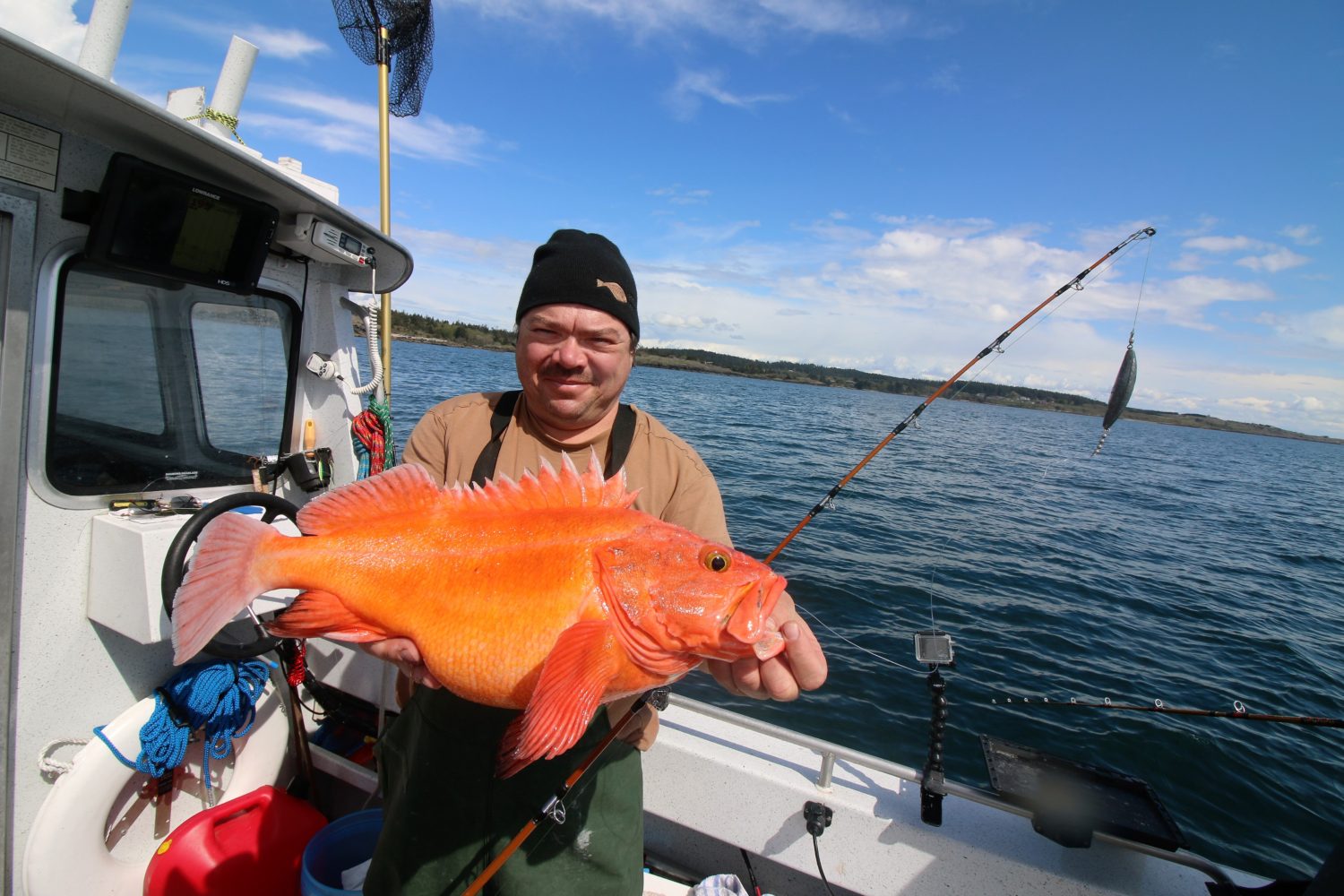 Dragons were battled, both large and small. Most fish were landed and some were lost. Our largest fish was a massive heavy female dragon. She latched onto a 3 pound quill back rockfish. The rockfish was hooked on a whole herring mooched by angler Erik Shouse. This fish was brought all the way to the boat and netted while only holding onto the rockfish and never actually being hooked! We call that a “klingon“. The big female immediately rolled violently spinning up the net, turning it over and winning her freedom as she fell back into the sea. The event was captured on Erik’s gopro and can be seen on his Facebook page LazyCoho.