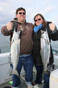 I can’t say enough about how amazing this trip was. Captain Steve got us onto the fish early and often, and we were hooking fish more frequently than any of the nearby boats. We ended up hitting the limit and heading back in with two beautiful coho salmon. While things were quiet on the boat, Captain Steve gave us recommendations on awesome, cheap places to eat. He also brought us to take pictures of sea lions while traveling from one fishing area to another. When we headed back in, Steve filleted the fish for us, taking care not to waste any of the fish, and ensured we had a way to take them home; he also gave us a tip on how to make a great broth out of the leftover bodies and heads. Captain Steve was an excellent guide and made sure we had a great outing. We are looking forward to our next trip out with captain Steve!